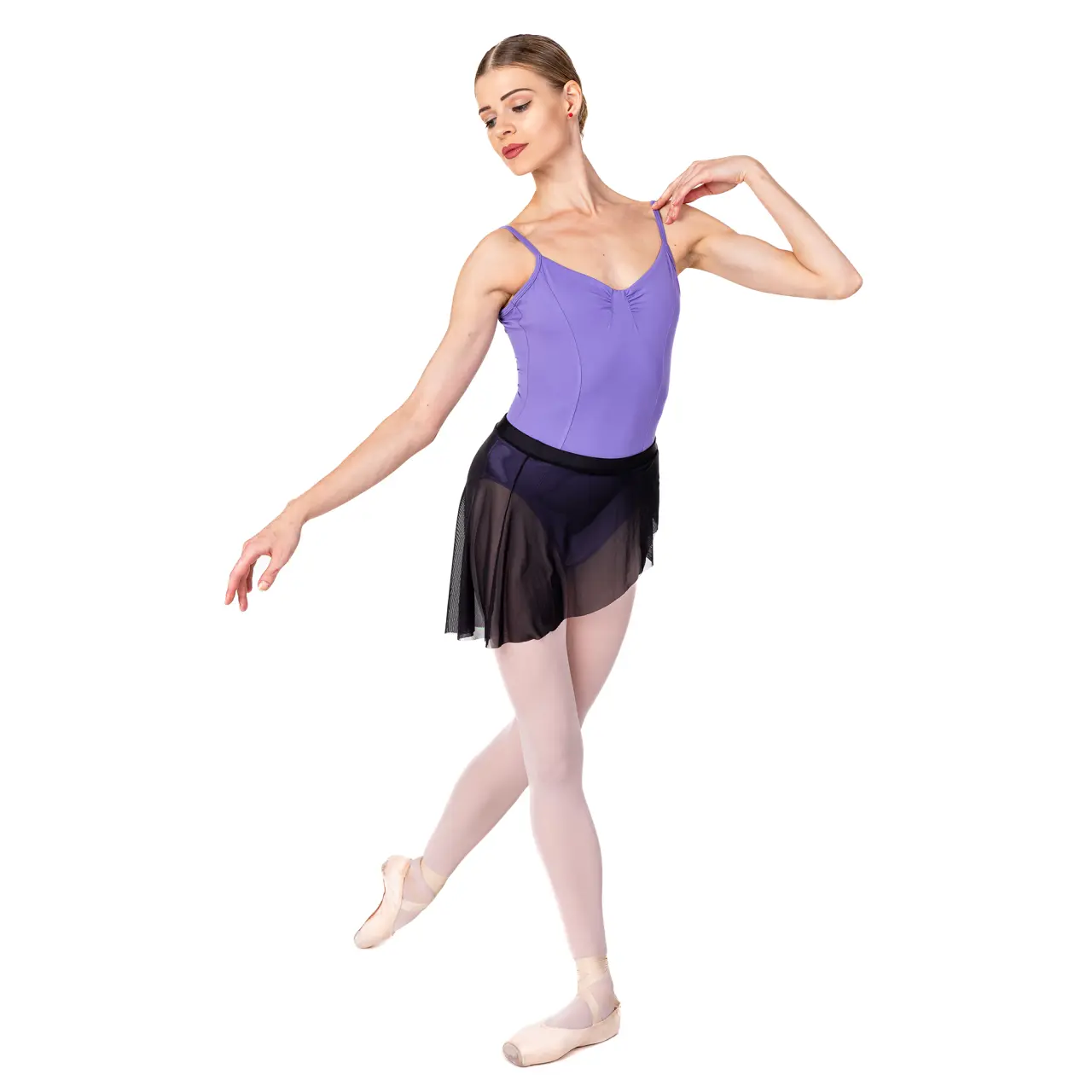 The high-quality leotard with thin straps has vertical seams on the sides in the front, the so-called "princess cut". They beautifully accentuate the figure. The beautiful neckline on the back adds elegance to the leotard, and the higher-cut knickers elongate the legs. It simply has beautiful ballet lines. It is washed in cold water with mild detergent and left to dry freely. Material: 90% polyamide and 10% elastane.