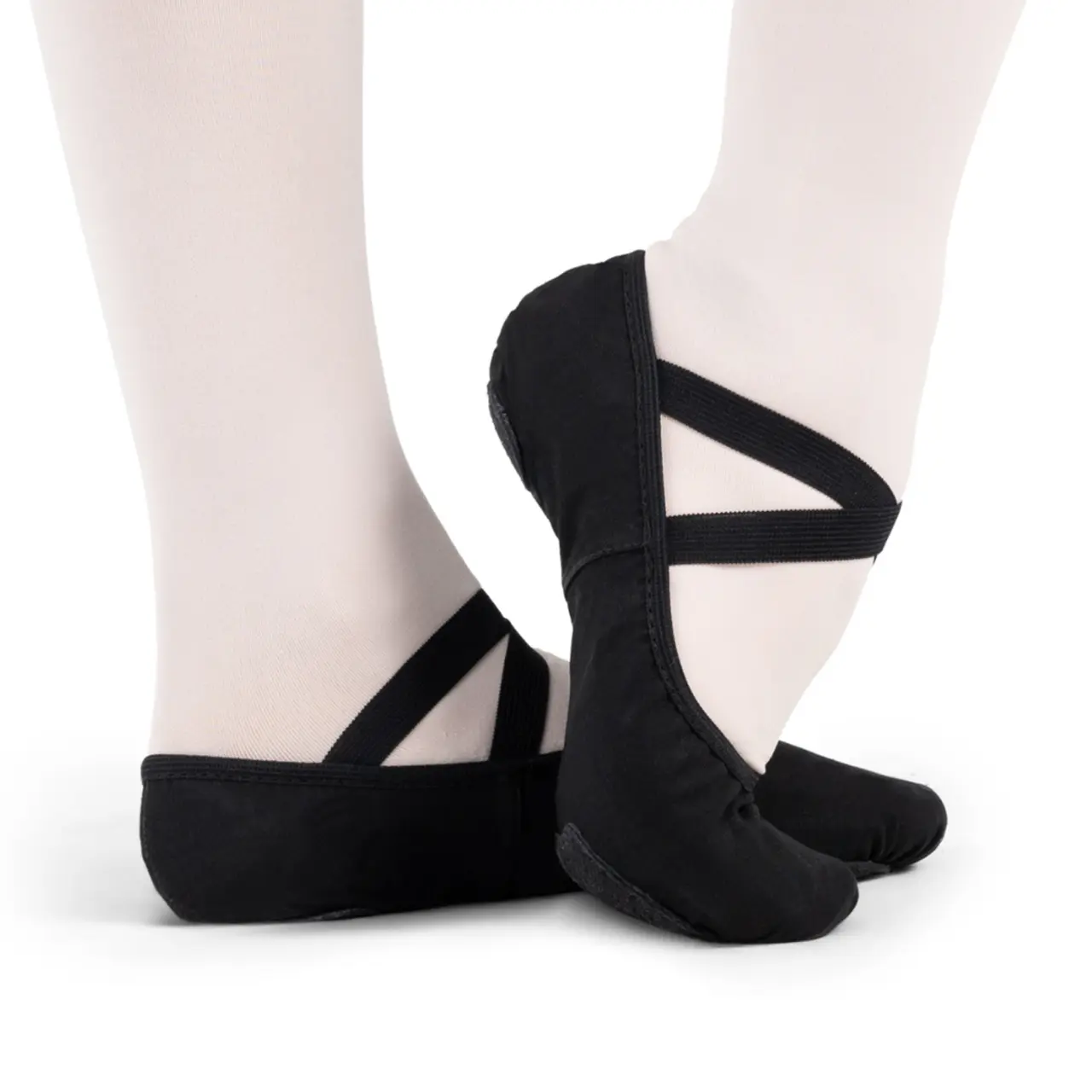 The Stella canvas ballet slippers for children, with split leather soles and crossed elastics across the instep, are the ideal model for beginners or more experienced dancers looking for reliable, adaptable, breathable and affordable dance shoes.
