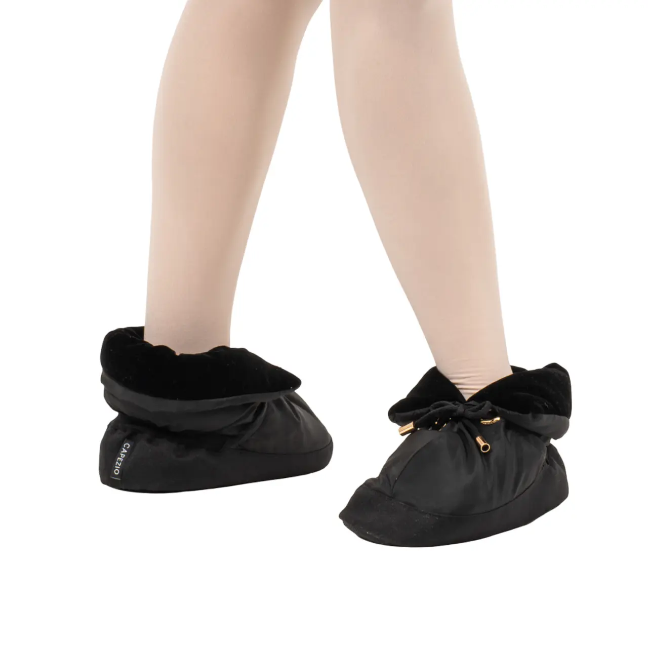 Add style and comfort to your dance outfit with the elegant Mini Warmup Booties, ideal for keeping your feet warm between classes and rehearsals. This insulated dance footwear combines functionality with a touch of luxury thanks to the soft velvet trim at the top and the elegant black colour.