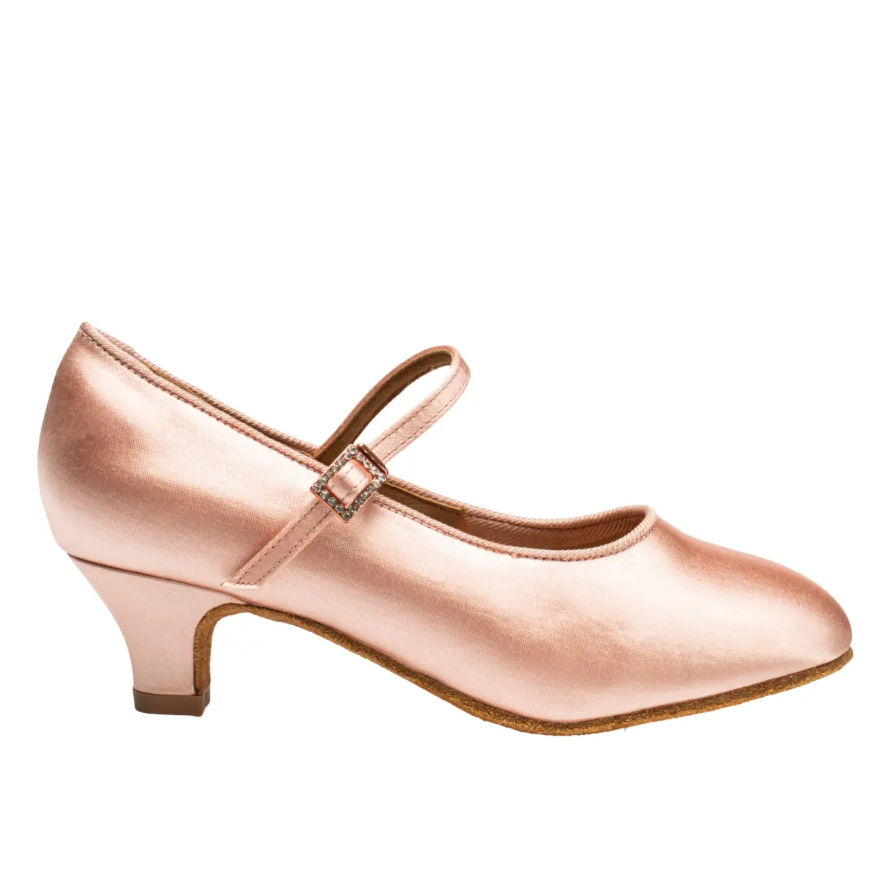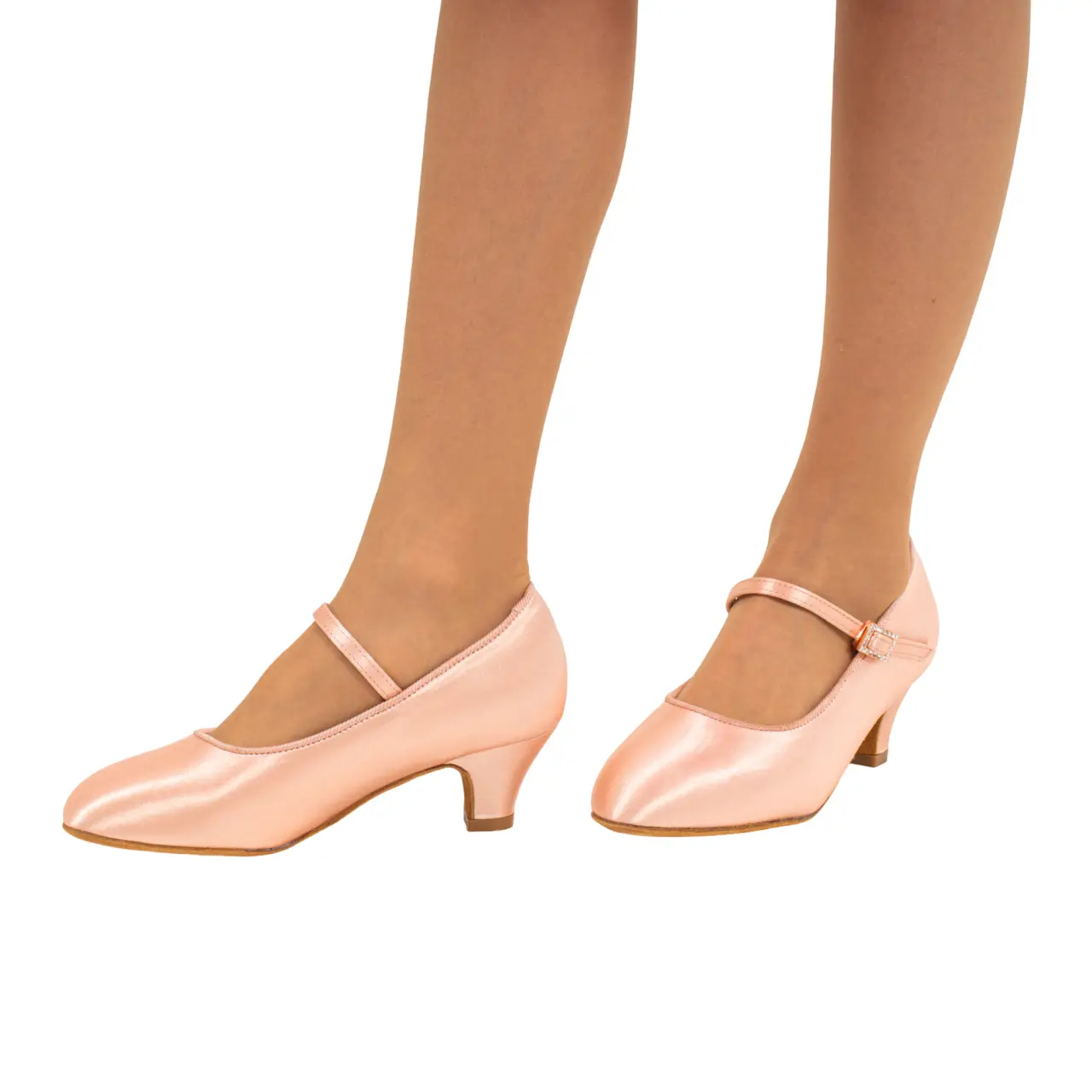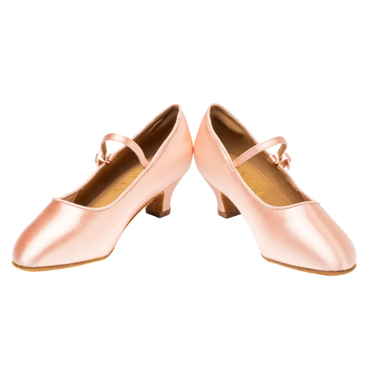 The upper is made of high-quality satin in a light flesh color with a subtle pink undertone, which looks very soft and girly. The light color stands out beautifully on the dance floor and is easy to match with dance dresses.
