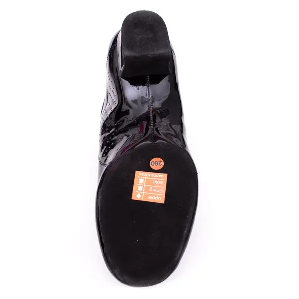 Latin dance shoes for men and boys with a split sole and with the upper lacquered, patented. On the arch from the inside of the foot, they are finely perforated for better breathability. The heel is 4 cm heigh.