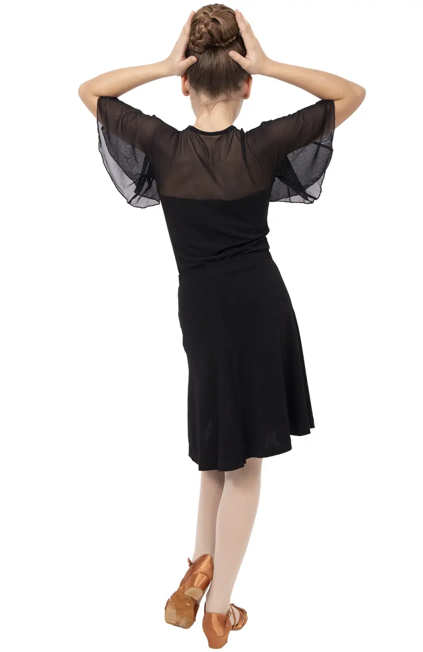 The classic flared skirt reaches the knees. It is only slightly gathered. The elastic material hugs the hips and fits more closely. Gentle waves form towards the bottom. A slit allows for free leg movement. It is made of 90% polyamide and 10% elastane.