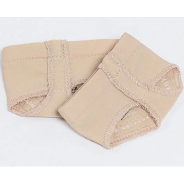Protect your feet during spins. At the bottom of the shoe are two separate pads, one for the big toe and second for the rest of toes. Two holes are designated the same - one is for a the big toe, second for the rest. The perimeter whole shoe is held together by elastic rubber band. The material around the fingers is made out of nylon and lycra.