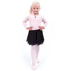 Cardigan – a lightweight sweater made from soft, stretchy, and very comfortable material (94% viscose and 6% spandex), perfect for little girls to keep warm, even during training. Since it’s not too thick, it’s ideal for transitional seasons as well. It’s not a wrap style – it’s worn like a classic pullover. The front features a crossed design, while the back is smooth.