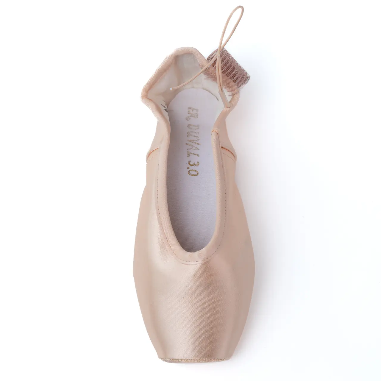 Ballet pointe shoes are soft and lightweight, suitable for the Egyptian foot type. The box and insole are made of plastic. They do not break. The toe insole is gently bent and ready for immediate use. Its hardness is - medium hard. The padded interior gives the foot a feeling of comfort. On the heel, there is a fabric that prevents slipping. Elastic laces in the hem tie from the side, they do not interfere with the front. An elastic invisible ribbon to secure the heel is included. It is already pre-stitched on one side of the toe. Recommended for dancers with already perfect technique or for students whose teacher approves their use.