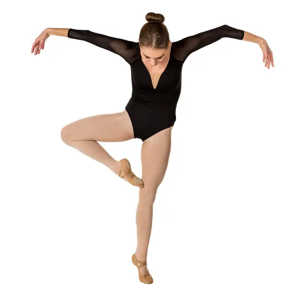 A soft, elastic, and lightweight leotard with mesh sleeves, inspired by the traditional cut of classical dance leotards. Material: polyamide micro and mesh. Hand wash in cold water and let air dry.