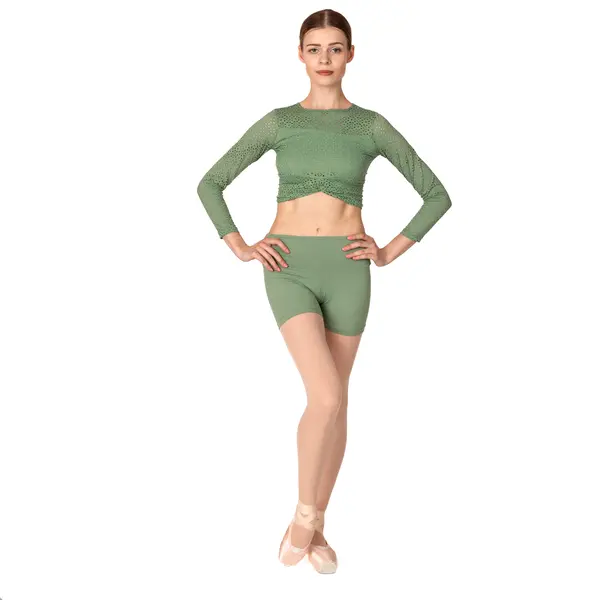 Crop top from limited edition, one of the leading producers of dancewear So Danca. 3/4 sleeves, airy elastic material and perforated pattern. Ideal for any movement class.
